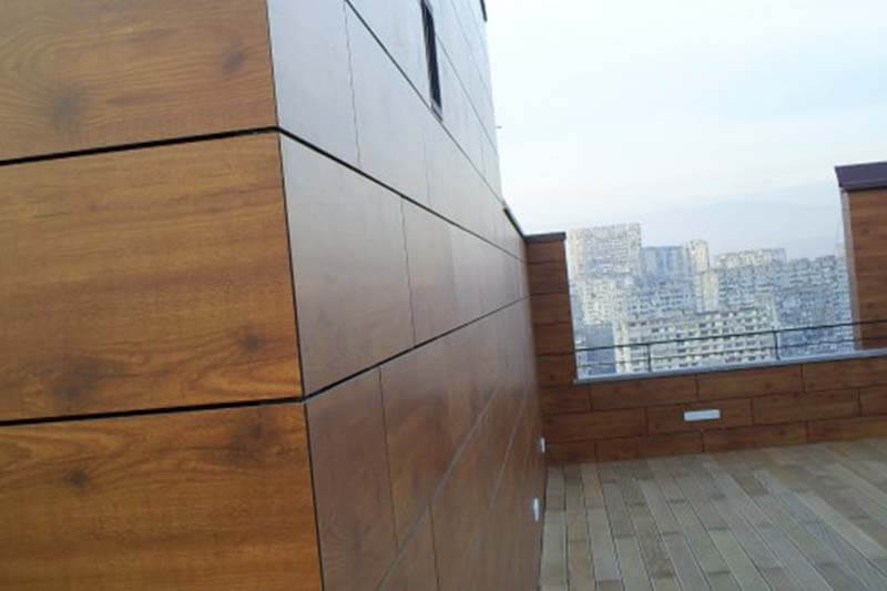 Данные панели из HPL (ламината высокого давления, англ. – high pressure laminate, HPL) устойчивы к любым возможным воздействиям окружающей среды, их поверхность защищена акриловыми и полиуретановыми смолами. Эти вещества обеспечивают прочность панелей при их использовании для отделки фасадов, балконов и прочих внешних поверхностей.